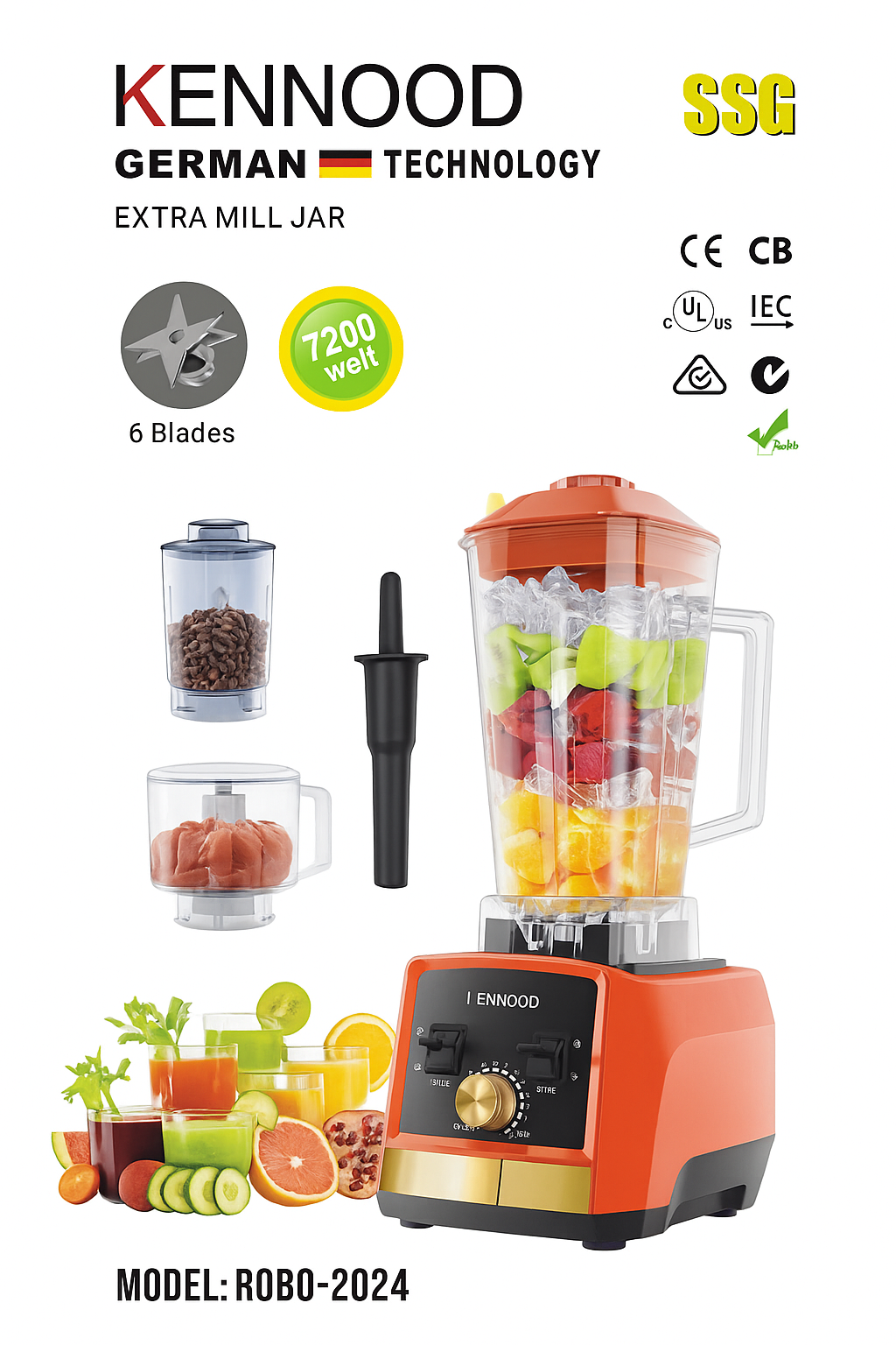 خلاط KENNOOD الأصلي 3 في 1 بقوة (7200 welt)